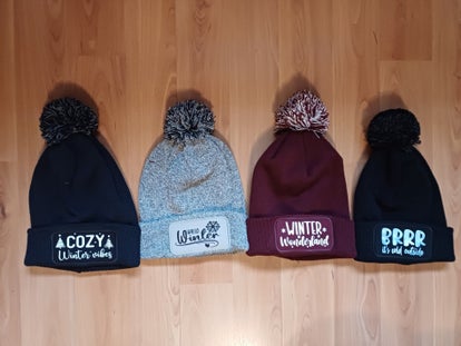 Muts met pompon, gepersonaliseerd in een kleur naar keuze met naam of korte tekst.