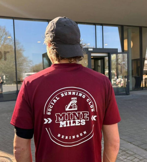 Loopshirt van het merk Rogelli in de kleur bordeaux, bedrukt aan voor- en achterzijde.
